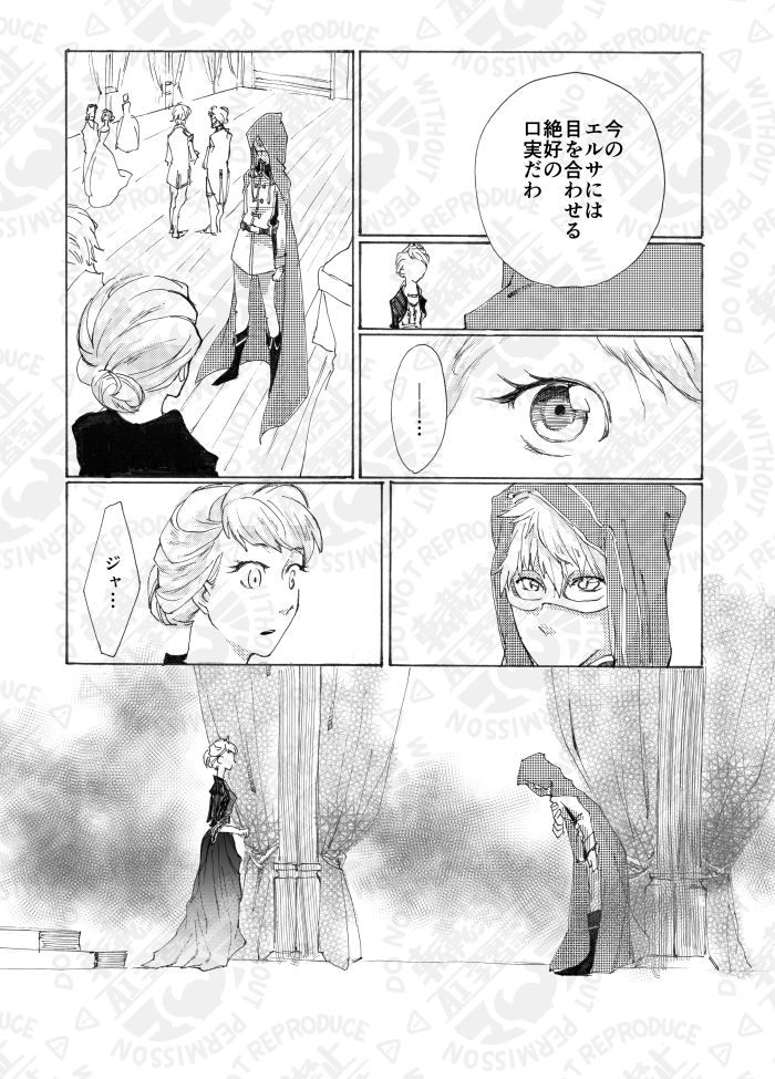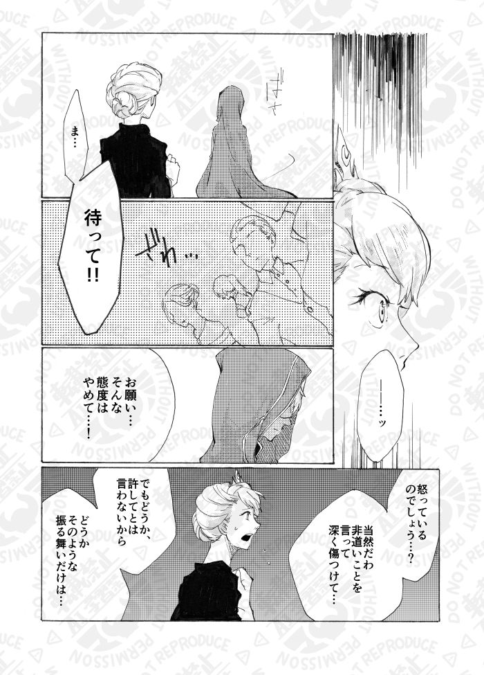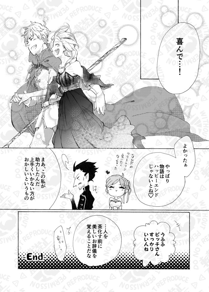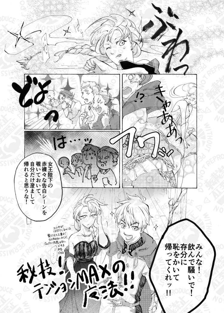ジャエルアンソロジーへの寄稿が2回目で、1回目が完全にギャグだったのでちゃんとしたやつ描きたいってずいぶん気合入れて描いたのを覚えています。ジャックがエルサ抱き上げるコマお気に入り。だけどエルサのドレスはもっと派手でよかったよな…黒って…。
