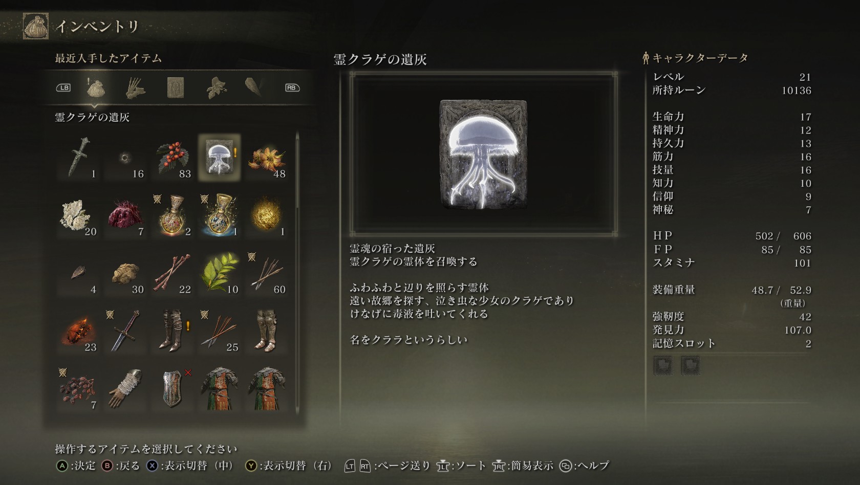 霊クラゲのクララちゃん。説明文でもう好き。この子好き。ぜったい故郷に帰してみせる。